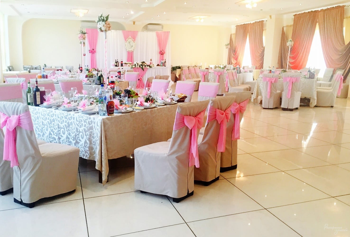 Играли в этом ресторане в меньшем зале свою свадьбу в октябре 2013 года.Долго выбирали ресторан, хотелось чтобы интерьер был красивым и цены доступные.Скажу сразу что то они пишут 250 грн/чел-300 грн/чел за банкет-это нереально.Цены там немалые, но нам обещали все сделать под наш бюджет.Мы решили остановить свой выбор на этом ресторане.Потом долго не могли выловить администратора, ее вечно не было или она занята.Договаривались с ней на определенный день и время что мы приедем обсуждать меню, в итоге, она пару раз переносила встречу уже когда мы были на полпути,типо у них банкет вдруг пришел.Не очень приятно.Когда мы наконец попали к ней и начали составлять меню свадебного торжества, оказалось что для того чтоб у нас был хороший стол и гостям было что есть, нам необходимо включить в меню и то, и другое, а иначе будет очень бедный стол.Было ощущение что нам навязывают многое.В итоге, у нас получилось 360грн/с человека.На такую сумму мы не рассчитывали, но так как время уже поджимало, до свадьбы оставалось 2 недели, пришлось урезать бюджет по другим статьям наших расходов.Говорили об одном, получилось другое. Тоже, мягко говоря,не приятно.Спиртное нам разрешили свое приносить, фрукты только у них покупать,ссылаясь на то, что при заказе от 350 грн/чел можно.У нас получилось 360грн/чел, но нельзя.Настроение испортилось и так, уже не хотелось спорить.В день свадьбы прошло все нормально.Столы нельзя сказать что ломились от количества еды, было все, я бы сказала, в натяжку.Ожидали за такие деньги большего.Кухня неплохая, но как там писали что очень вкусно, это не так.Вкусно, но особого впечатления нет.Хочется отметить работу официантки, она одна нас обслуживала, девочка- большая молодец!Подносила, уносила, убирала все вовремя!Своей работой она впечатлила нас и всех гостей, мы в конце вечера отдельно ее отблагодарили.Администратор Анна Николаевна не очень приятный человек.Какого-то дружелюбного отношения, внимания, элементарного уважения нет(навязчивое меню, несерьезное отношение к договоренным встречам, улыбки нет никогда)Больше проглядывается корысть.Вообщем, впечатление осталось средненькое.Своим друзьям мы рекомендовали бы поискать другое место.Все равно деньги те же, а отношение, может лучше.